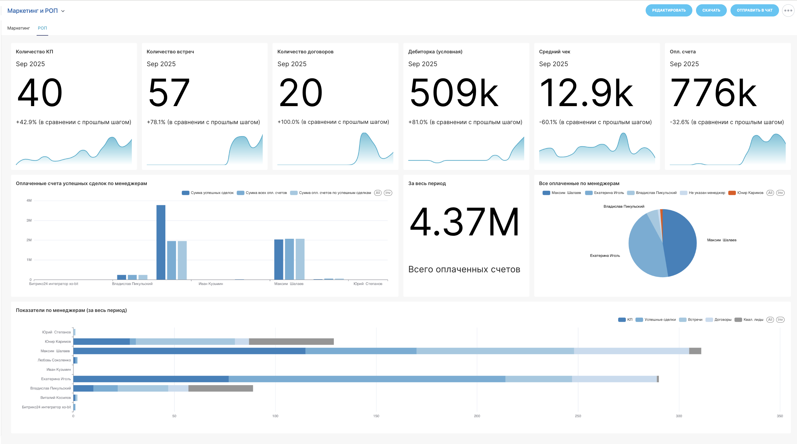 У вас есть портал Битрикс24: Мы создаем BI-отчеты на вашем портале Битрикс24. Если системы пока нет, установим и настроим её для вас.